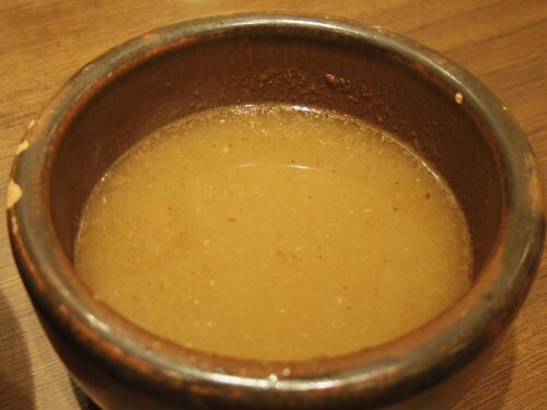 別に感動もなく、普通に美味しいつけ麺でしたので、黙々と熱い付け汁に冷たい麺をつけ、ぬるくして食べるという作業にいそしむ。