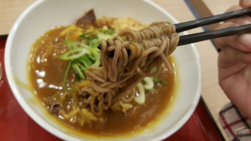 カレーにコクがあり味わい深く、蕎麦も非常に味が濃くてカレーに負けてない感じ。