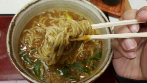 カレーはしっかり辛くてパンチが効いてて、そばは薄味ながら腰があり、しっかりカレーと絡んでこれもうまい。