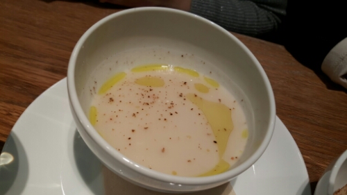 豆のスープは味が薄くて、スープのくせにパサパサっぽい。