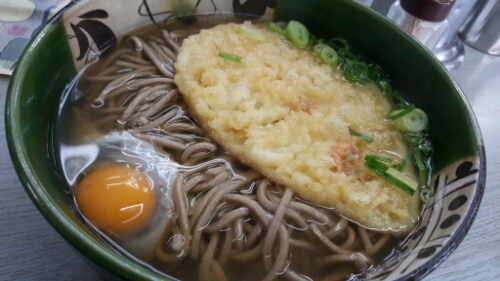 お昼は塚口駅前の立ち食いそば松屋でスタミナそば。