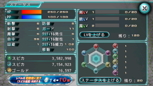 まずは剣銃魔のレベルをあげる事でベースのステータスに変化は出るのか確かめてみます。