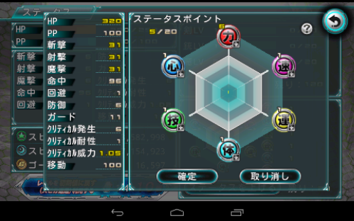あと命中96、回避1、防御6、ガード11、クリティカル発生6、耐性1、威力1.02、移動100というのが初期値のようです。